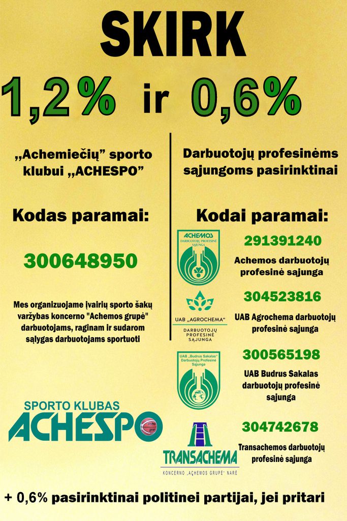 Kviečiame skirti 1,2 procentus gyventojų pajamų mokesčio mūsų klubui, nes tik Jūsų dėka galime toliau sėkmingai vykdyti savo veiklą.